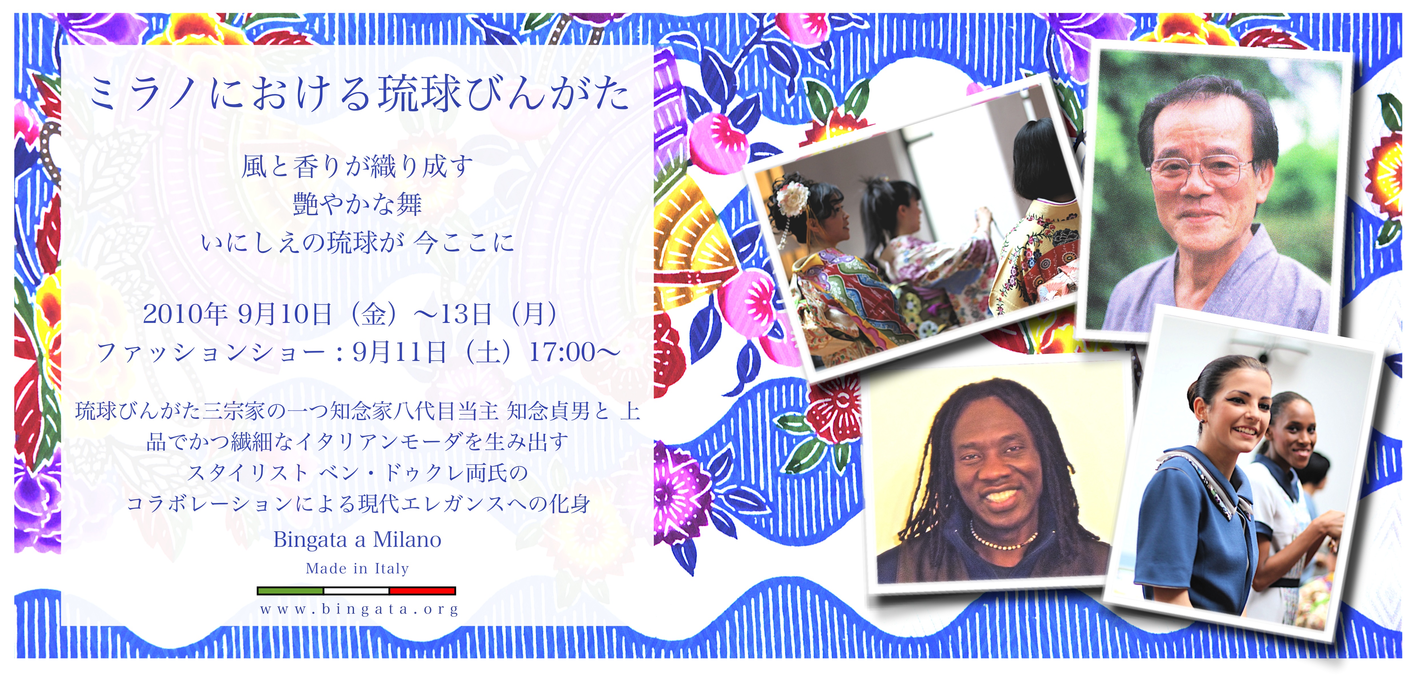 ミラノにおける琉球びんがた「Bingata a Milano」が場所を沖縄に移しデパートリウボウ4階婦人服売場において「Lady Salon女性のためのスペシャルな4日間」のイベントの中で紹介させて頂きます。沖縄の光の下での「Bingata a Milano」をどうぞお楽しみ下さい。